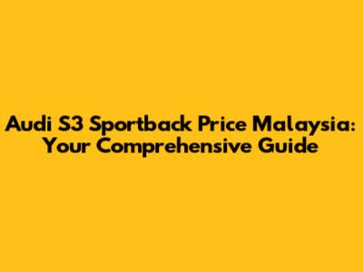 Audi S3 Sportback Price Malaysia: What You Need To Know