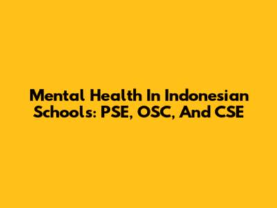 Mental Health In Indonesian Schools: PSE, OSC, And CSE