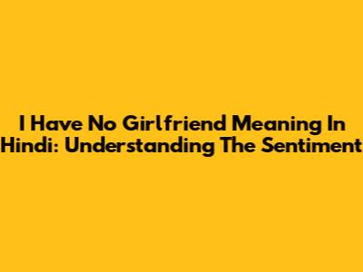 I Have No Girlfriend Meaning In Hindi: Understanding The Sentiment