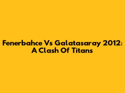 Fenerbahce Vs Galatasaray 2012: A Clash Of Titans