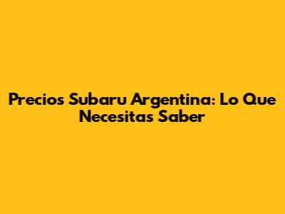 Precios Subaru Argentina: Lo Que Necesitas Saber