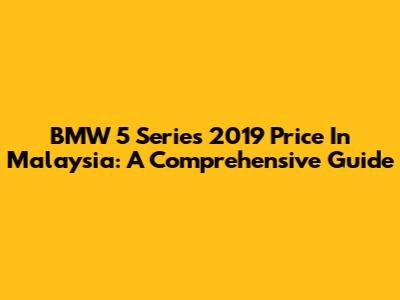 BMW 5 Series 2019 Price In Malaysia: A Comprehensive Guide