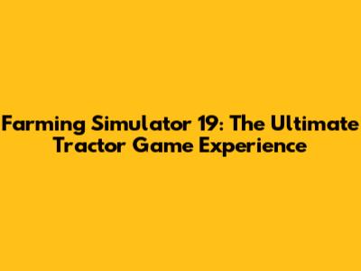 Farming Simulator 19: The Ultimate Tractor Game Experience