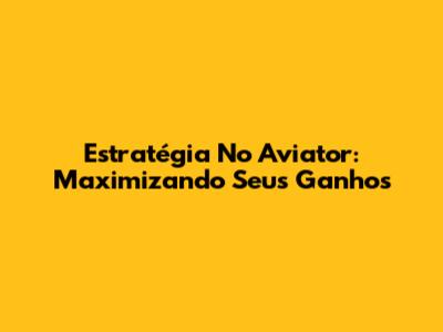 Estratégia No Aviator: Maximizando Seus Ganhos