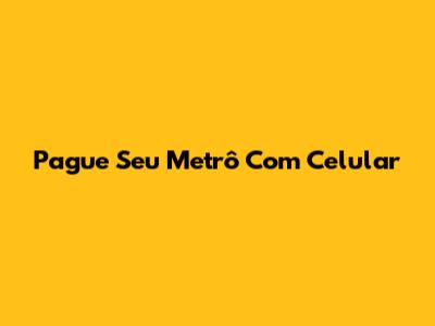 Pague Seu Metrô Com Celular