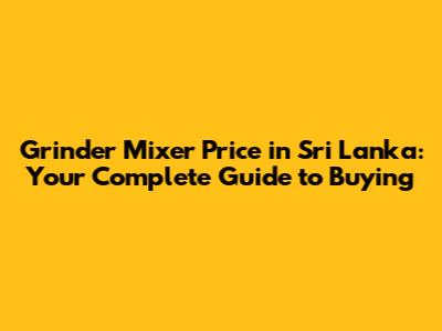 Grinder Mixer Prices In Sri Lanka: Your Complete Guide