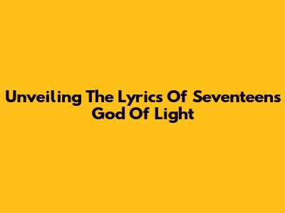 Unveiling The Lyrics Of Seventeen's 'God Of Light'