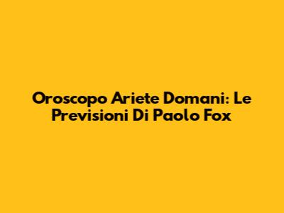 Oroscopo Ariete Domani: Le Previsioni Di Paolo Fox