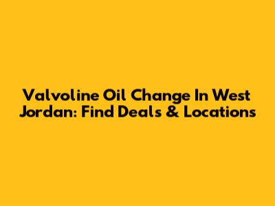 Valvoline Oil Change In West Jordan: Find Deals & Locations