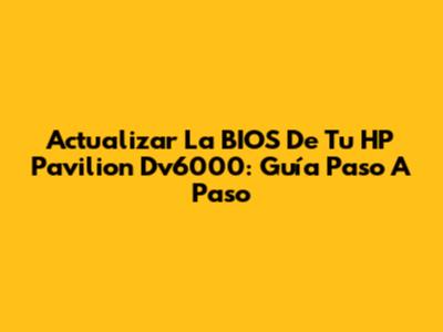 Actualizar La BIOS De Tu HP Pavilion Dv6000: Guía Paso A Paso