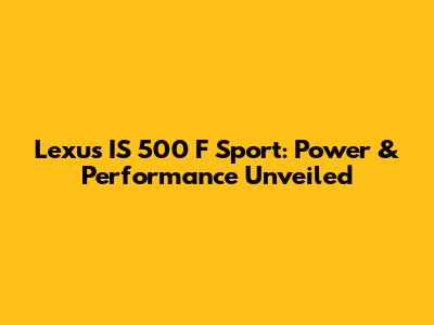 Lexus IS 500 F Sport: Power & Performance Unveiled