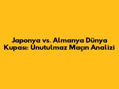 Japonya Vs. Almanya Dünya Kupası: Unutulmaz Maçın Analizi