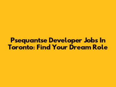 Psequantse Developer Jobs In Toronto: Find Your Dream Role
