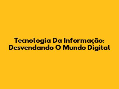 Tecnologia Da Informação: Desvendando O Mundo Digital