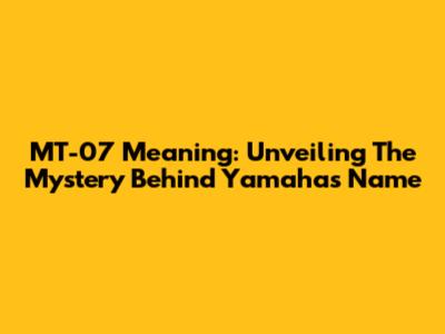 MT-07 Meaning: Unveiling The Mystery Behind Yamaha's Name