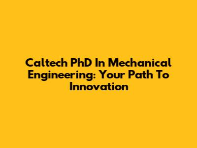 Caltech PhD In Mechanical Engineering: Your Path To Innovation