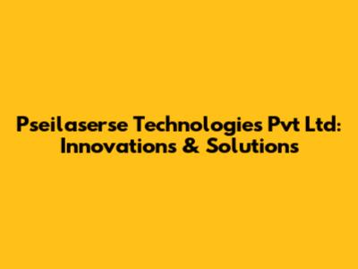 Pseilaserse Technologies Pvt Ltd: Innovations & Solutions