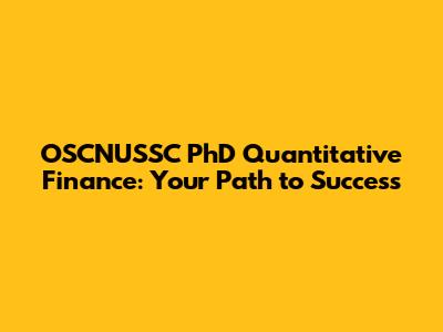 OSCNUSSC PhD Quant Finance: Your Path To Success