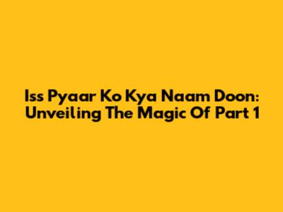 Iss Pyaar Ko Kya Naam Doon: Unveiling The Magic Of Part 1