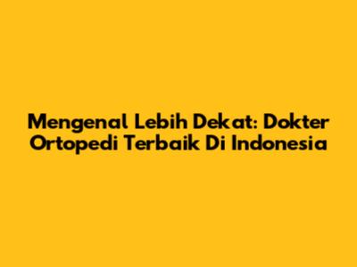 Mengenal Lebih Dekat: Dokter Ortopedi Terbaik Di Indonesia