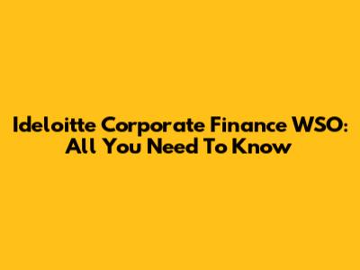Ideloitte Corporate Finance WSO: All You Need To Know
