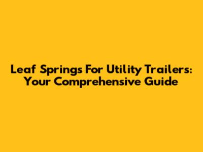 Leaf Springs For Utility Trailers: Your Comprehensive Guide