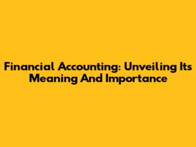 Financial Accounting: Unveiling Its Meaning And Importance
